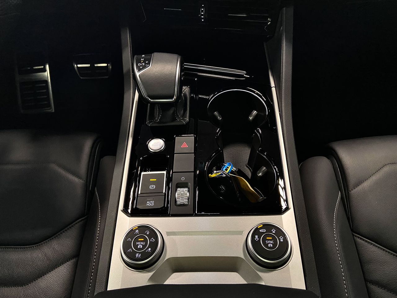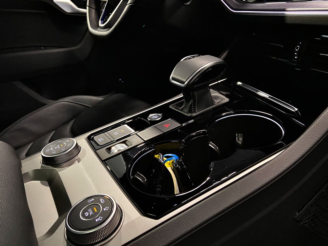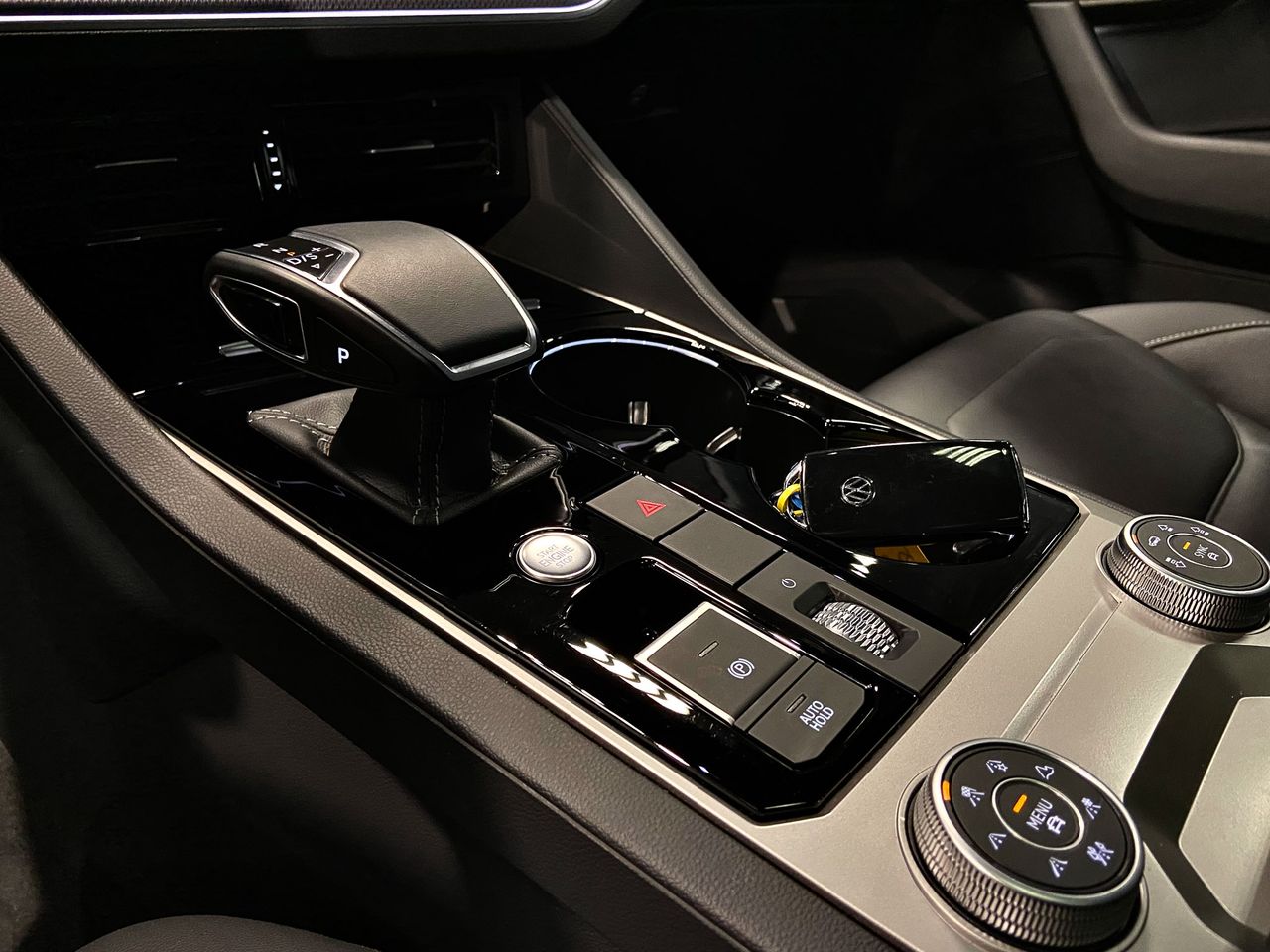 -Consola central en aspecto negro brillante / plateado.